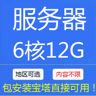 6核12G服务器包安装宝塔,不限内容!